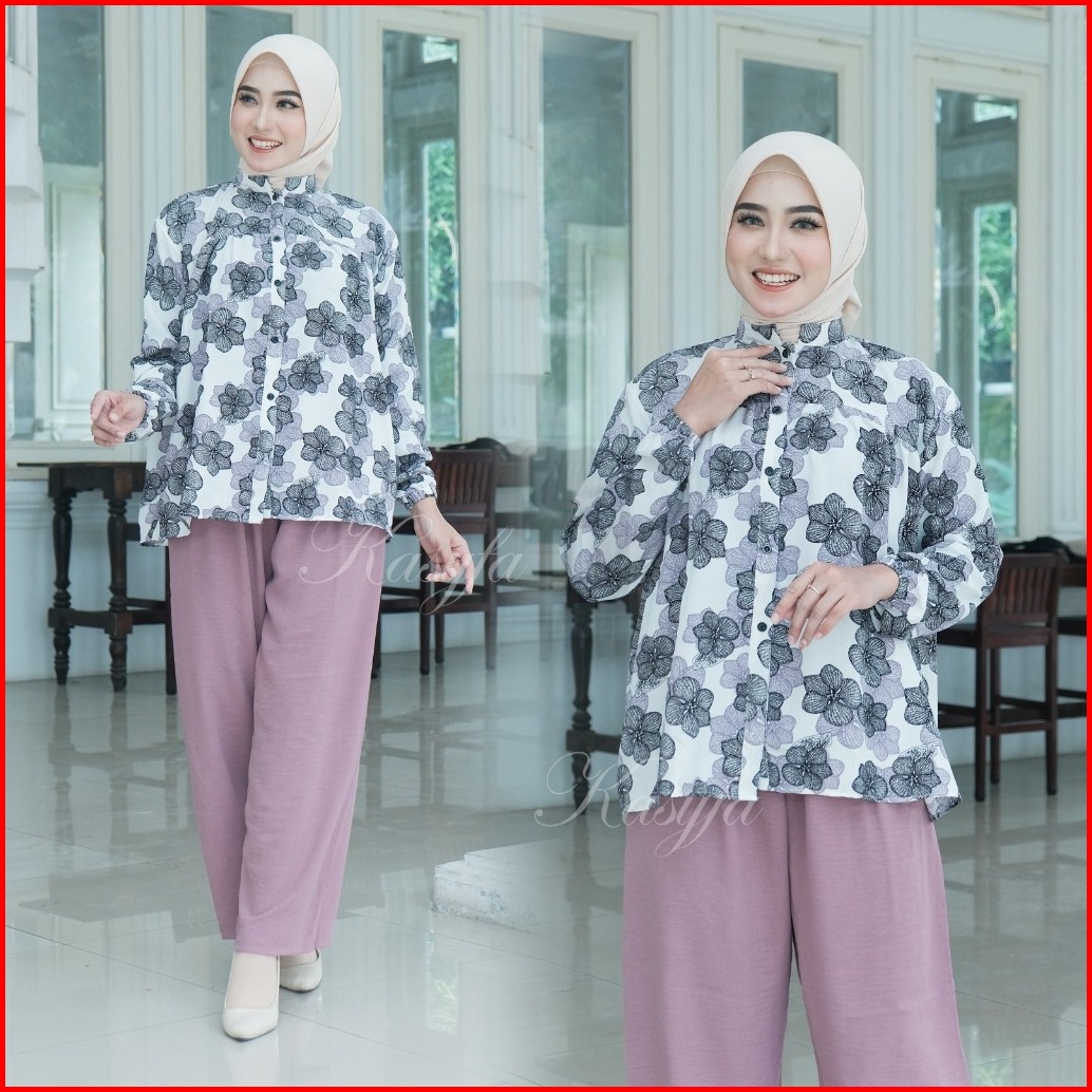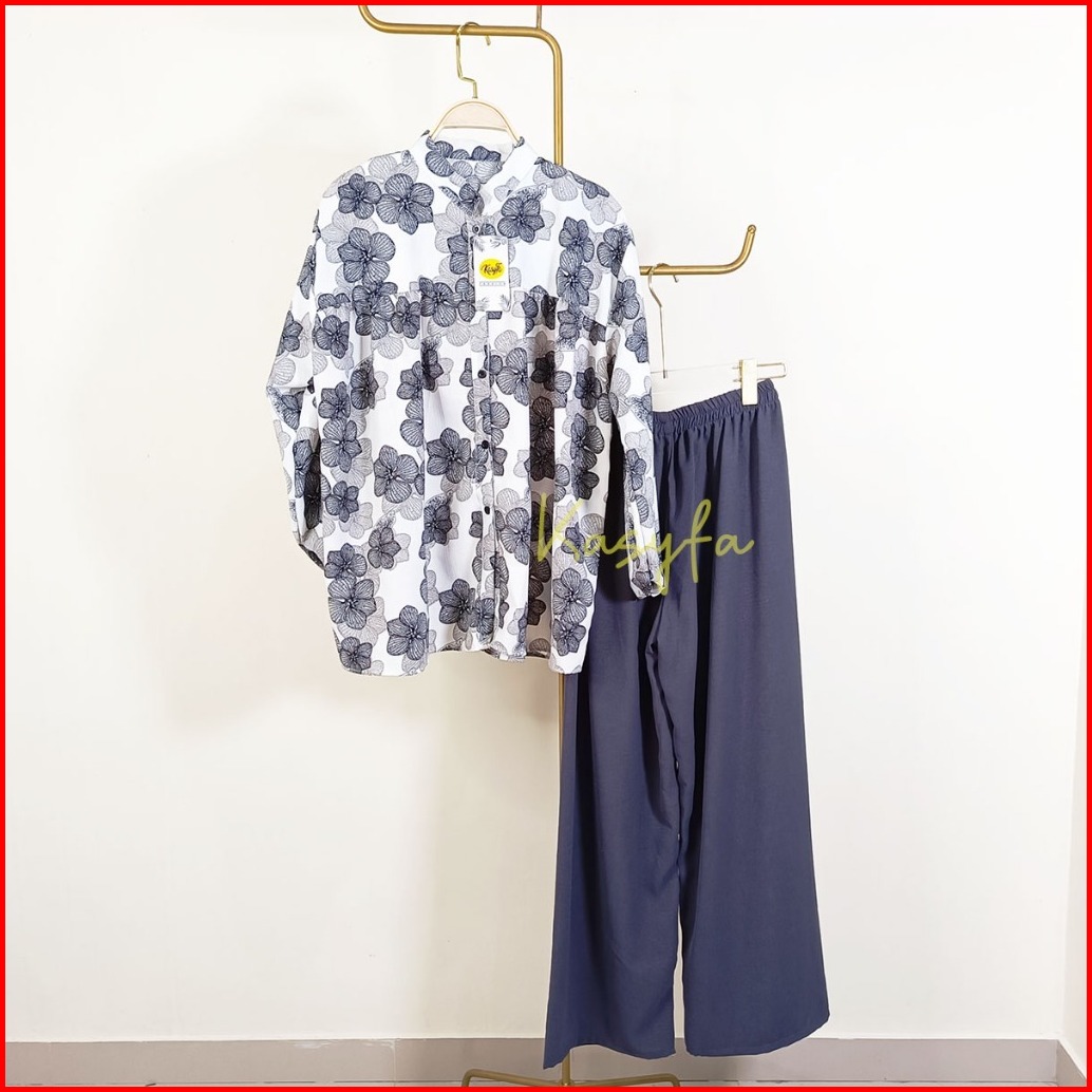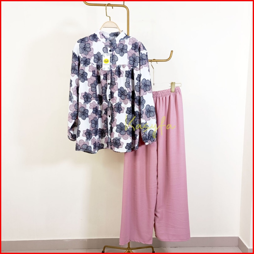 Cunda Setelan Celana Crinkle Wanita Motif Bunga