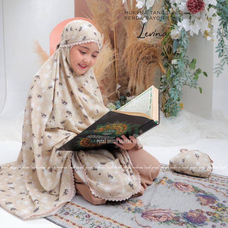 MUKENA ANAK KATUN TAS RANSEL BULAT MOTIF CERI MUKENA TRAVELLING REMAJA TANGGUNG