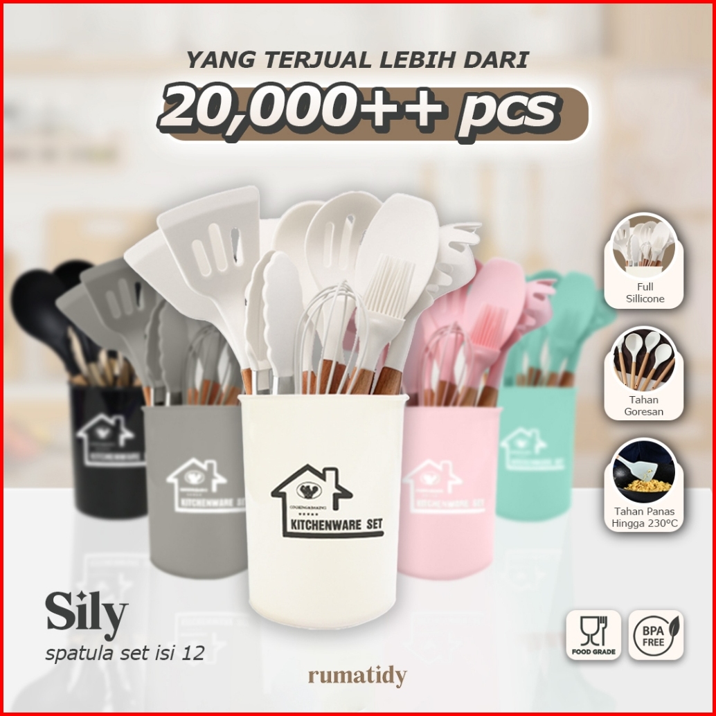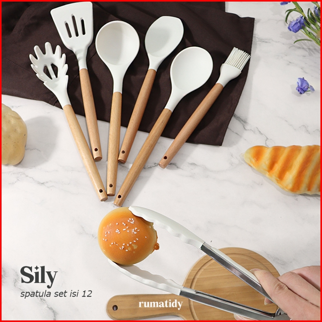 Rumatidysily Spatula Set 12pcs Alat Masak Silicone Sodet Steak Clip Set Oil Brush Kitchen Cooking
