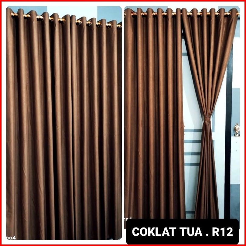 Gorden Polos Emboss Coklat Tua Muda Mocca Milo Cream Crem Krem Ring 12 Minimalis Murah Korden Ring Gordyn Pintu Horden S
