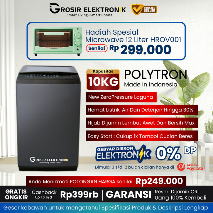 GRATIS ONGKIR - Mesin Cuci 1 Tabung 9 KG [ POLYTRON PAW-518B 7.5KG - 10KG ] - mesin cuci polytron 9kg - TL1