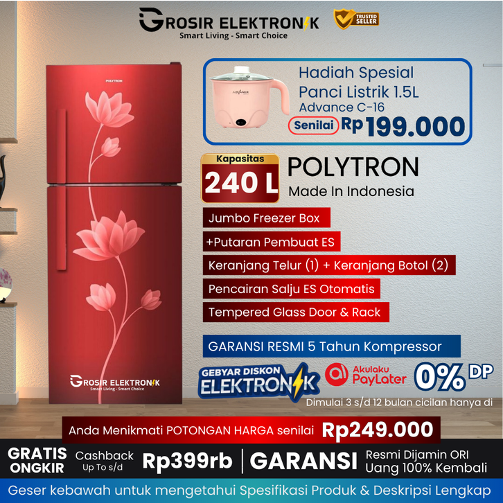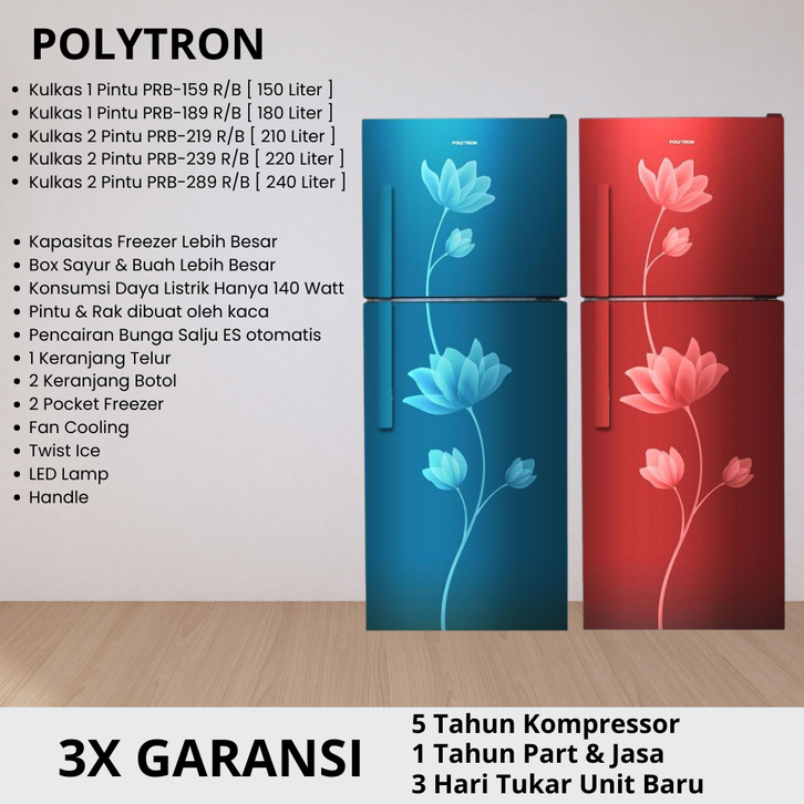 GRATIS ONGKIR POLYTRON - Kulkas 2 Pintu 240L Jumbo Freezer [ PRB-9 R/B 150L - 180L ] - kulkas polytron 2 pintu - K2P