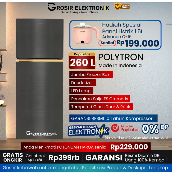 GRATIS ONGKIR POLYTRON - Kulkas 2 Pintu 260L Jumbo Garansi Resmi [PRWT-240L-260L ] - kulkas polytron - K2P - STGE