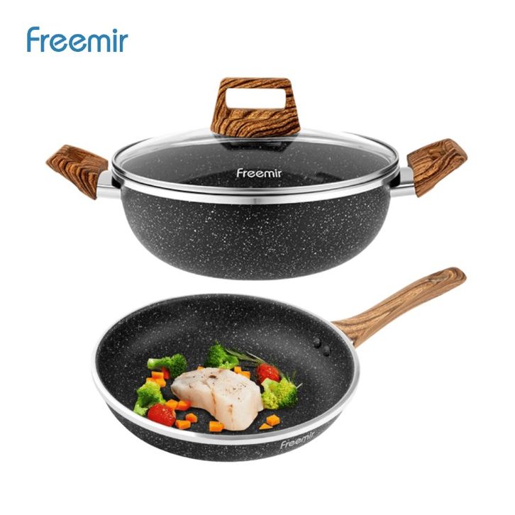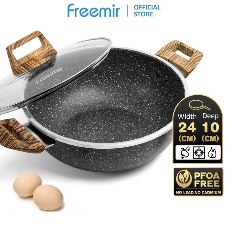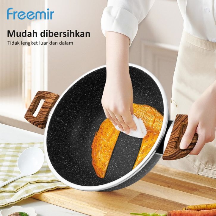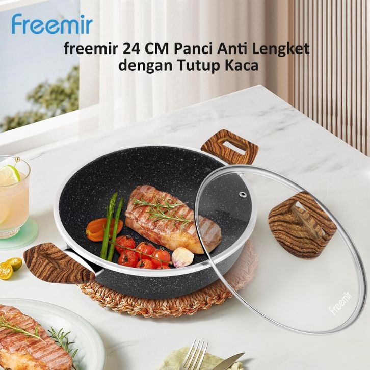 Wajan Teflon Anti Lengket Granit Freemir 24 Cm Hitam Penggorengan Premium Serbaguna Minimalis