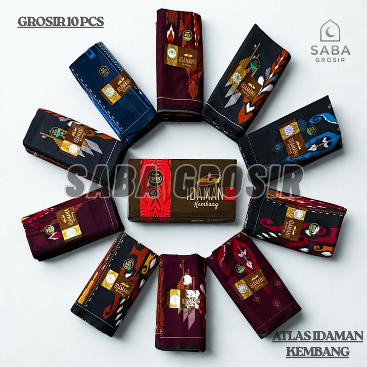Grosir 10 Pcs - Sarung Atlas Idaman Kembang GOLD Motif BHS Original