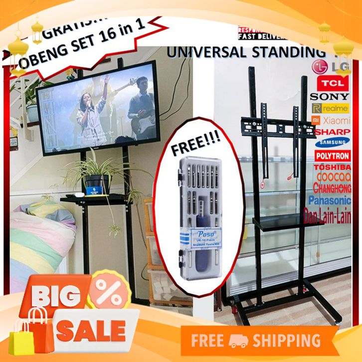 [Mall] GRATIS!! OBENG SET 16 IN 1 BRACKET TV STANDING LED LCD 24" S/D 65" | PAKAI RODA | ORIGINAL 100% FULL BESI KOKOH