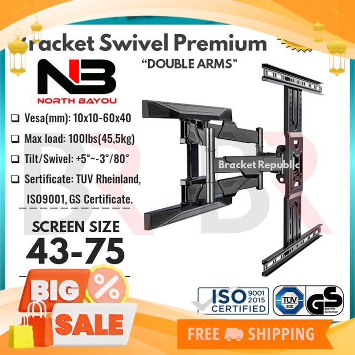 [Mall] NORTH BAYOU NB P6 BRACKET TV SWIVEL 43 49 50 55 60 65 70 75 INCH IMPORT PREMIUM