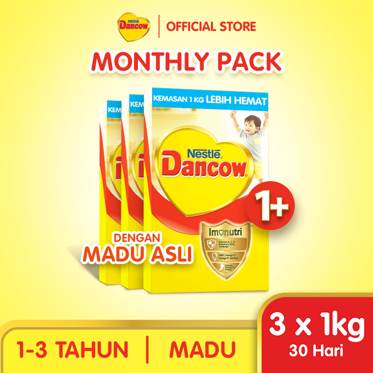 Nestle Dancow 1+ dengan Nutritods Susu Pertumbuhan Rasa Madu 1-3 Tahun Box 1kg x3