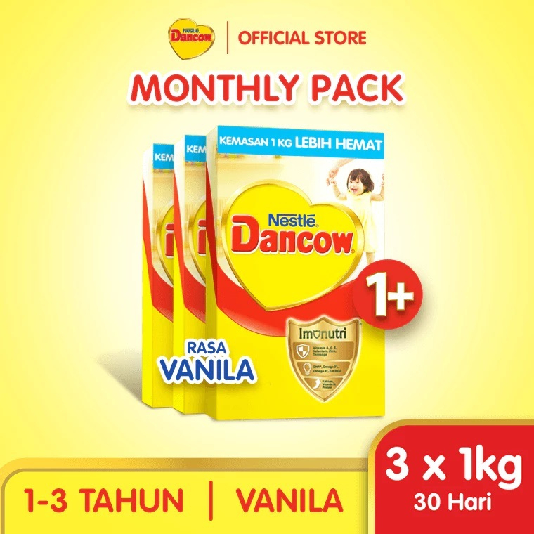 Nestle Dancow 1+ Susu Pertumbuhan Rasa Vanila 1-3 Tahun Box 1kg x3