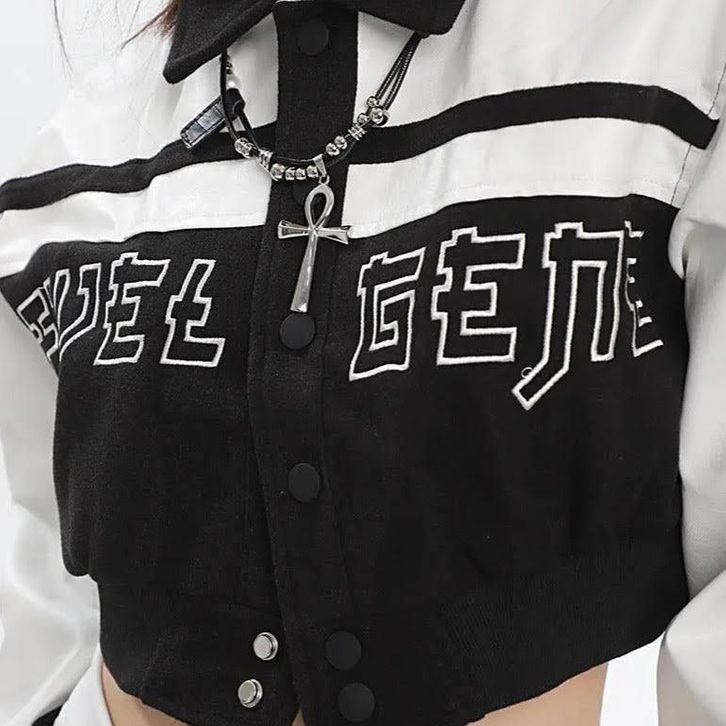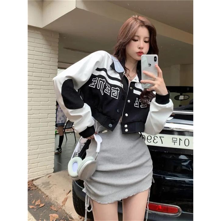 Jaket Varsity Crop Top Wanita Y2k Croope Korean Style Terlaris