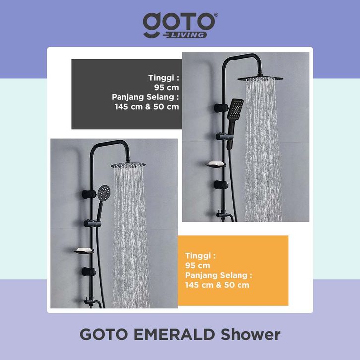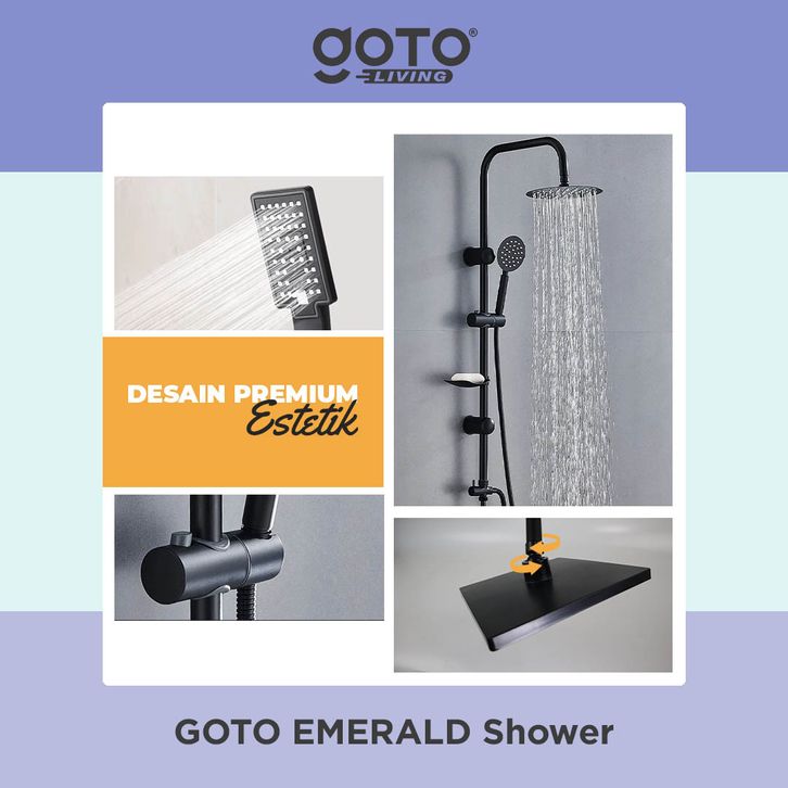 Goto Emerald Rain Shower Tiang 1 Set Sower Kamar Mandi Kotak Bulat