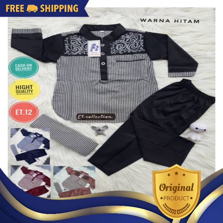 [Mall] BUSANA MUSLIM KOKO PAKISTAN KURTA BORDIR ANAK ANAK LENGAN PANJANG USIA 2TH - 13TH NAVY