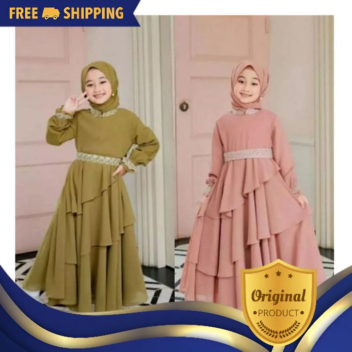 [Mall] QS - MIKAYLA KIDS GAMIS ANAK USIA 5-13 TAHUN FREE HIJAB BAHAN BABYDOLL