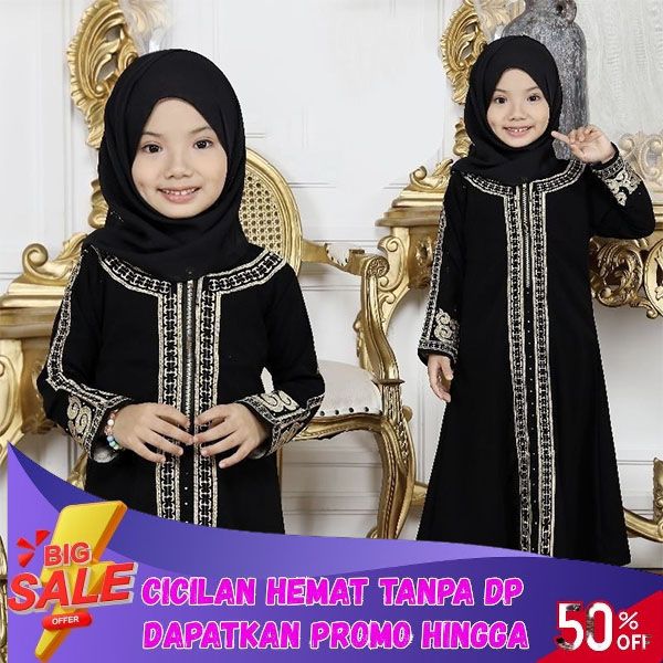 [Mall] KUMPULAN ABAYA ARAB SAUDI HITAM BORDIR ANAK-ANAK KIDS BAHAN JETBLACK GREAT A