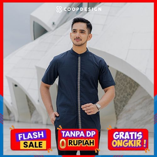 [Mall] [Exclusive Baju Lebaran 2025] Coop Design - Nawaf Koko Bordir Kerah Changi Collarless Katun Lengan Pendek Pria