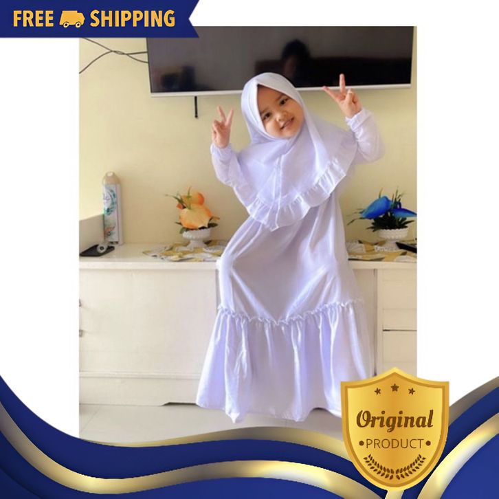 [Mall] TERBARU GAMIS NABILA PUTIH+JILBAB 1-12THN SIZE S-XL JERSY PREMIUM