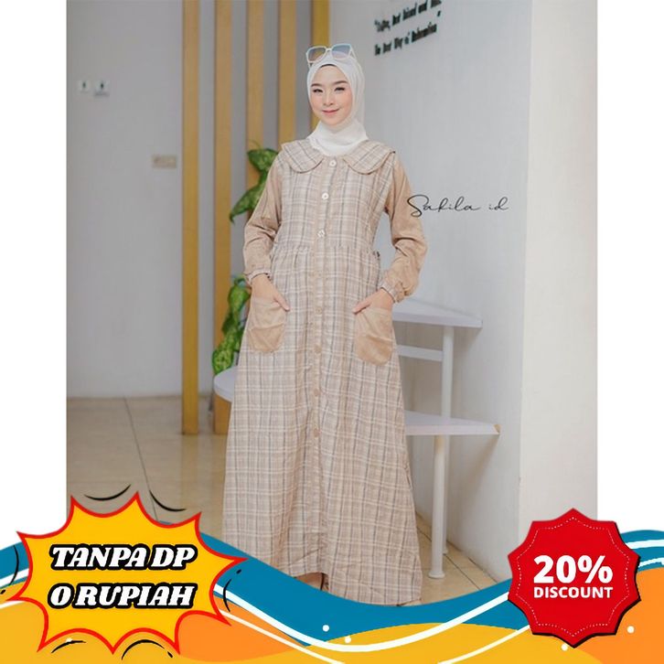 [Mall] MAXI DRESS HARUKA MOTIF KOTAK//GAMIS KEKINIAN TRENDY KOTAK KOTAK