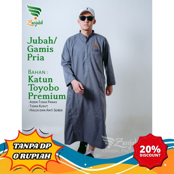 [Mall] Jubah Pria Dewasa Zanjabil Gamis Pria Baju Muslim Polos Terbaru Lengan Panjang Abu