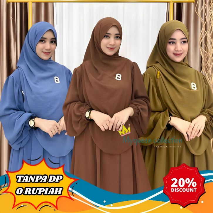 [Mall] Gamis set hijab Luna syar'i pasmina oval cringkel airflow premium