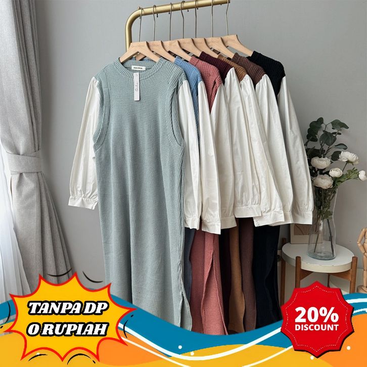 [Mall] OCLO NELVRA TUNIC MIDI DRESS COMBI