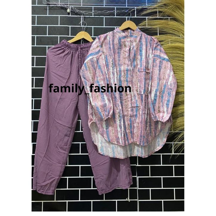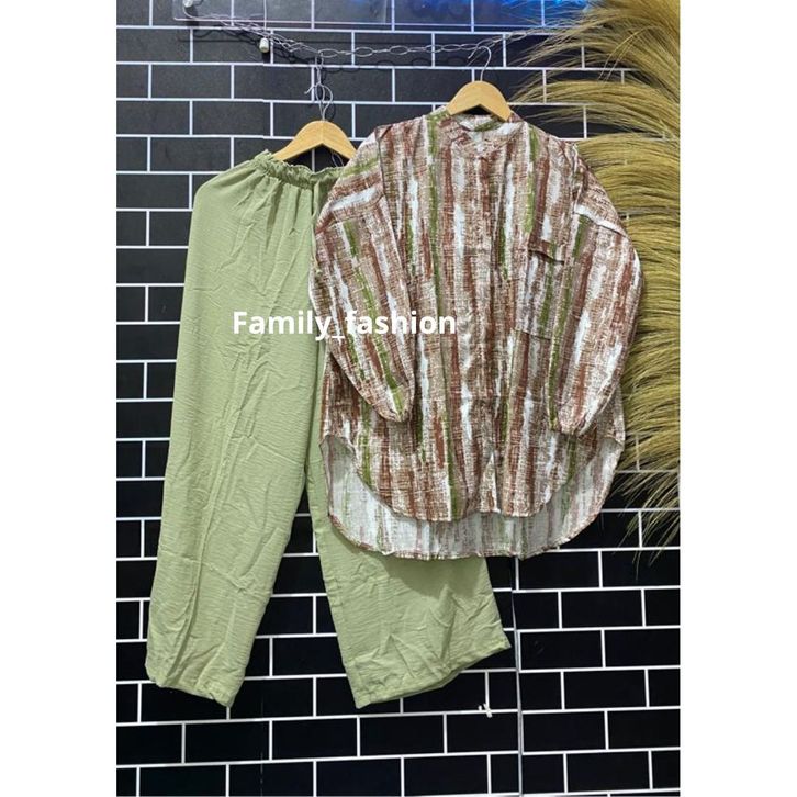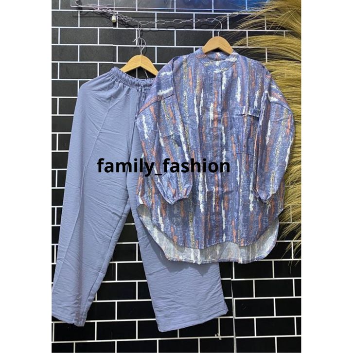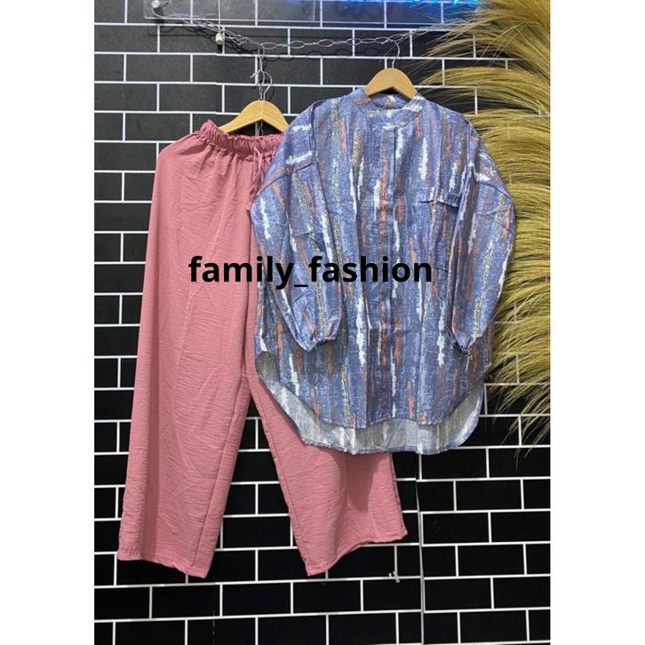 Setelan Cewek Oneset Bambo Baju Atasan Dan Celana One Set Motif Fashion Muslimah OOTD Stylish Kekinian Cantik