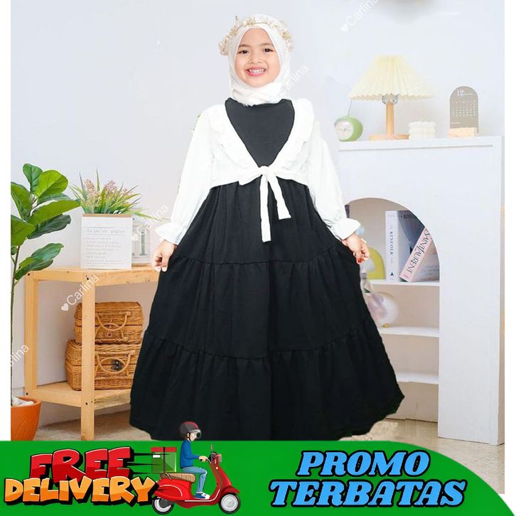 [Mall] CARLINA – GAMIS ROMPI PUTIH SERAYU ANAK DRESS MAXY CANTIK 3-13 TAHUN