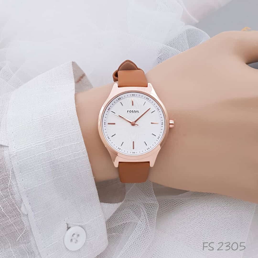 Terlaris - Jam Tangan Wanita FOSSIL Classic F3451TT Tali Kulit Free Box & Baterai Cadangan