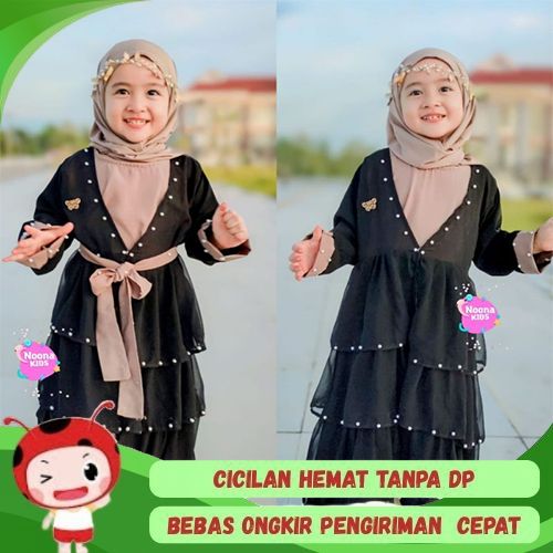 [Mall] NOONA KIDS 1-14 TAHUN DRESS MUSLIM ANAK PEREMPUAN HITAM GAMIS ANAK ABAYA KIDS MUTIARA 862 DUBAI ALIFA