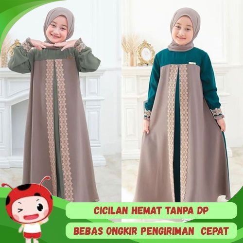 [Mall] HARUNA KIDS SET KHIMAR GAMIS ANAK PEREMPUAN USIA USIA 4-14 TAHUN S.M.L.XL / GAMIS ANAK CERUTY 2 LAYER