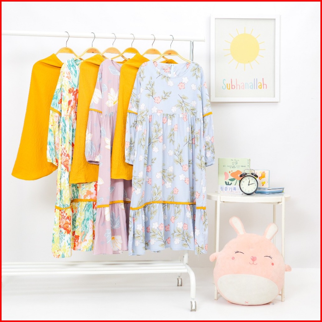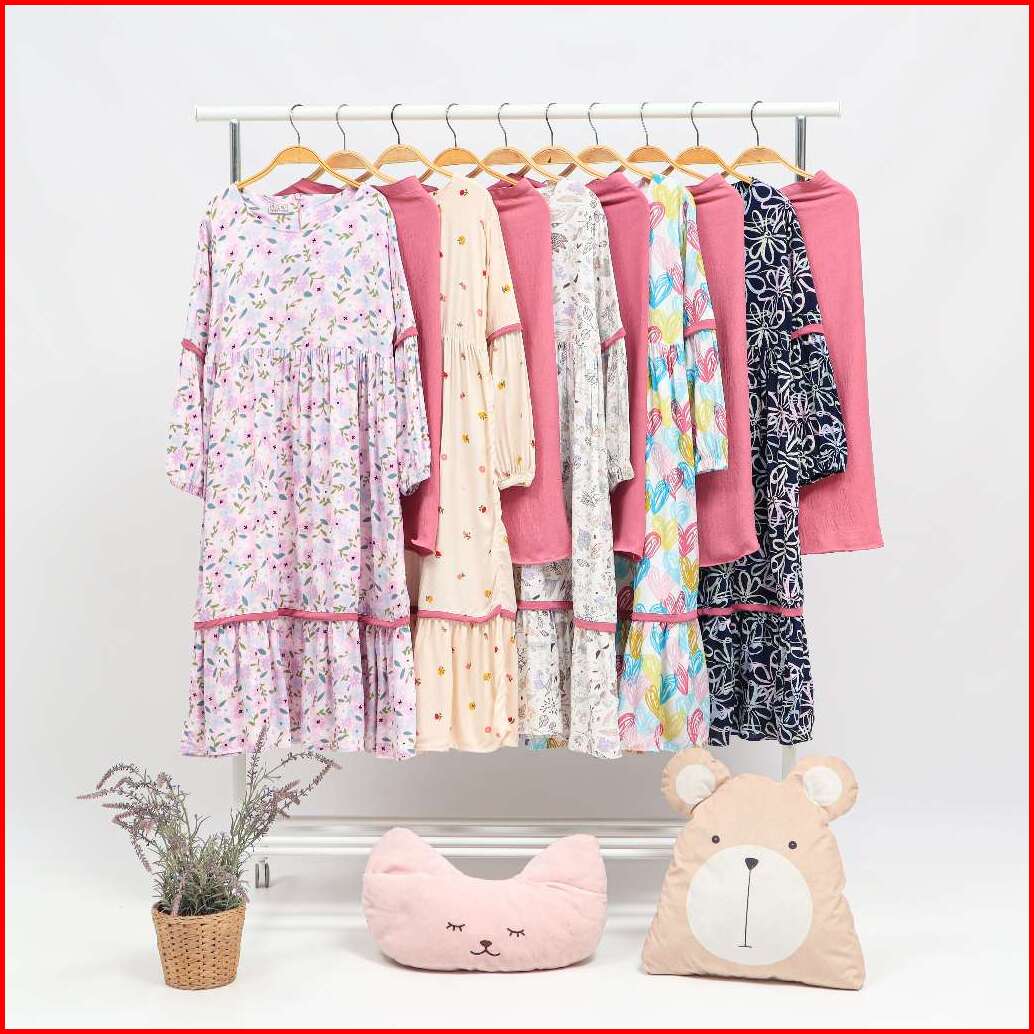 Chocopeach Set Gamis Anak Baju Muslim Gamis Rayon Home Dress Anak 4-8th