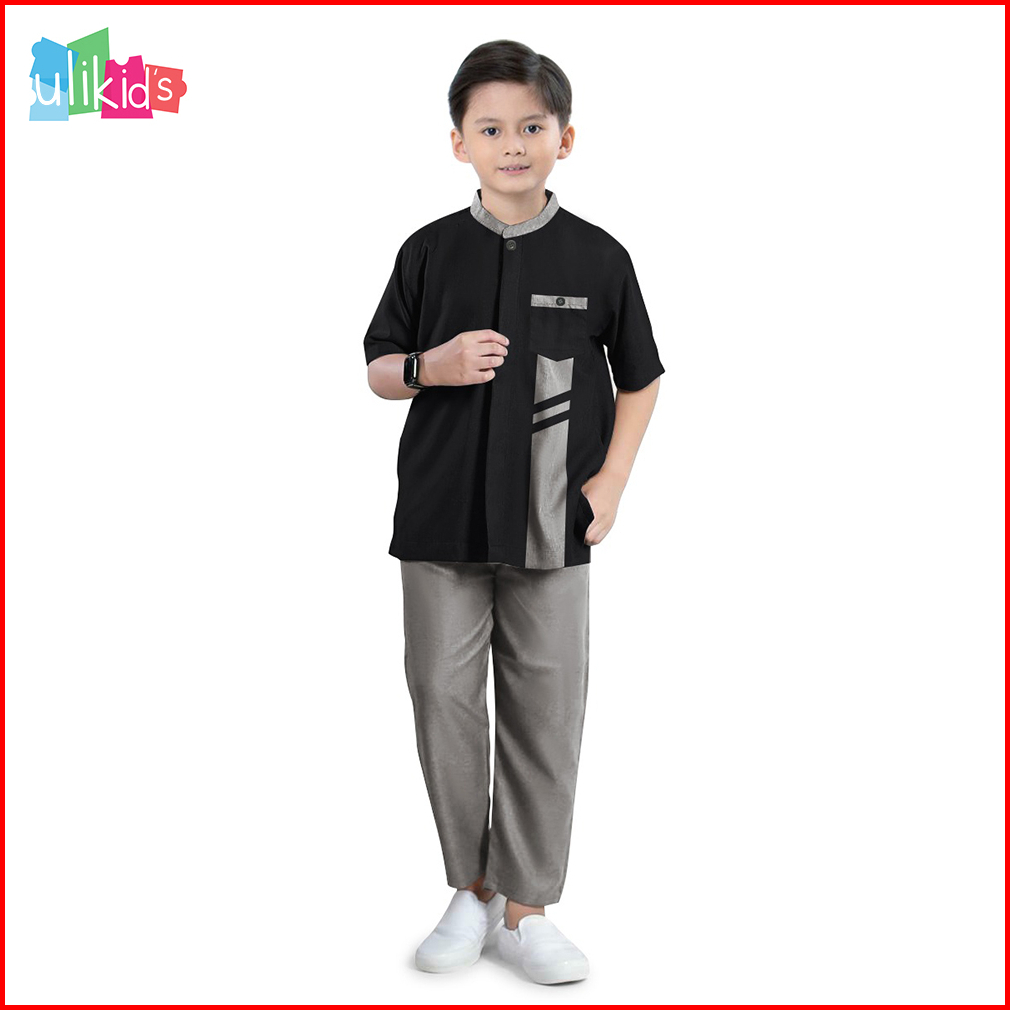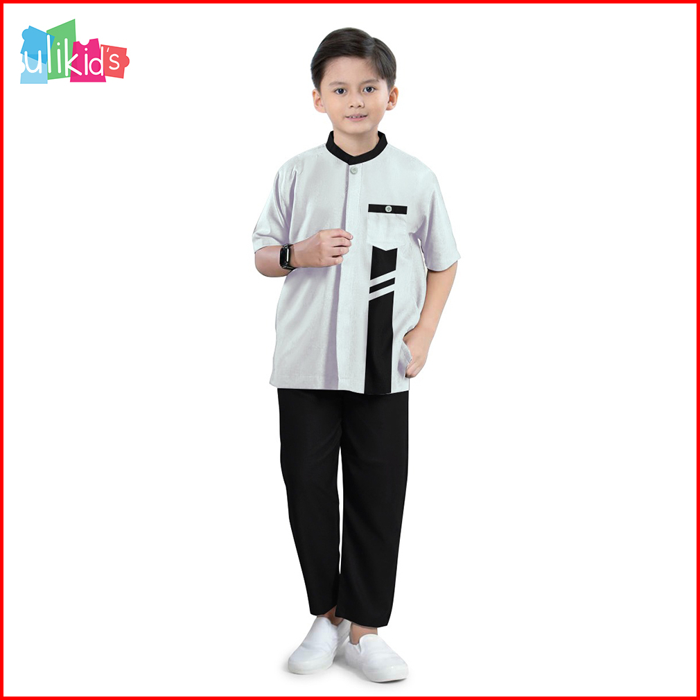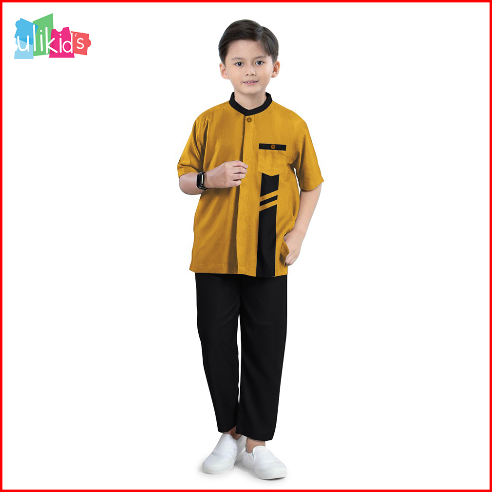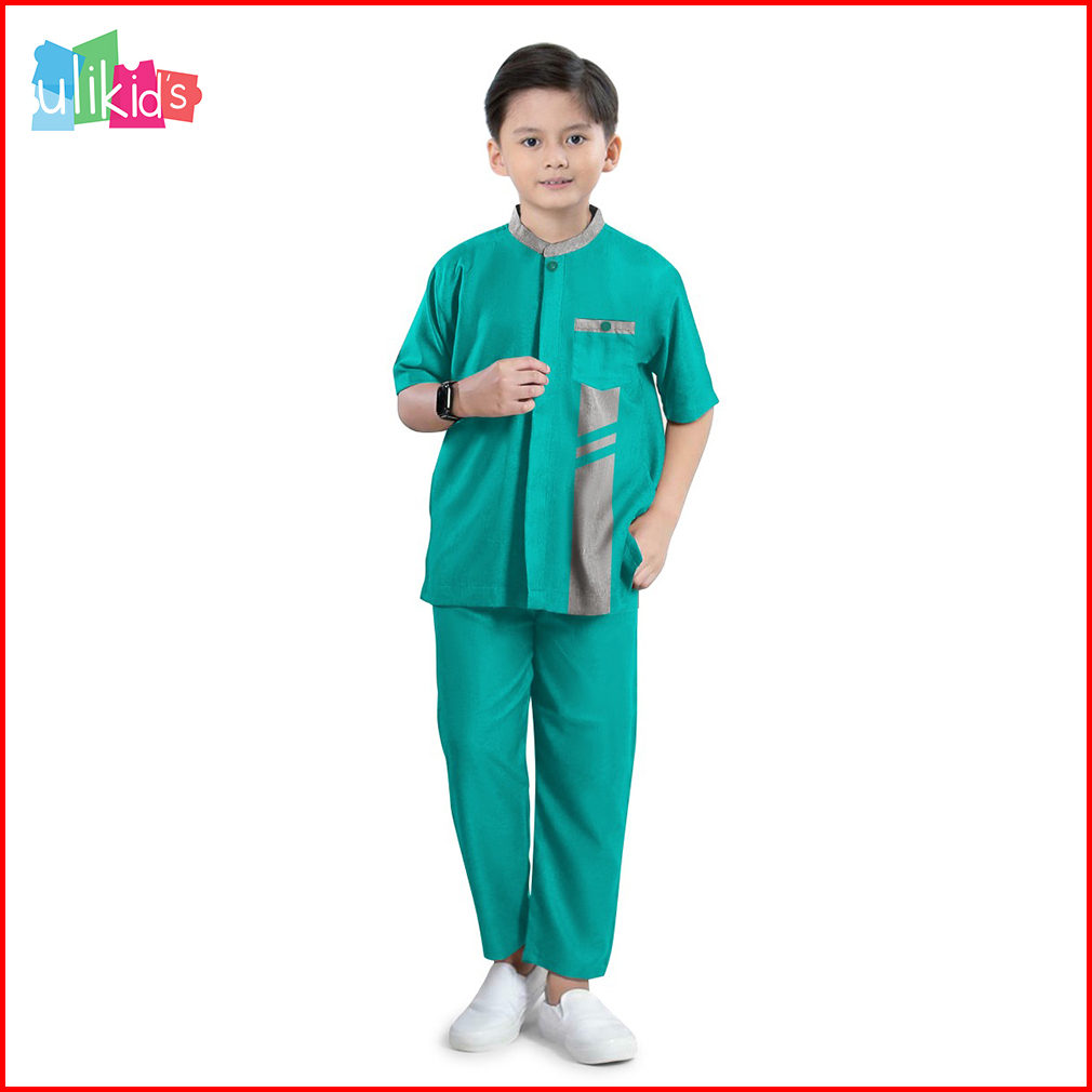 Ulikids Baju Koko Kemeja Anak Laki Laki Model Yazan Bahan Katun Toyobo Premium Warna Sage Green Usia 3-13 Tahun Termurah