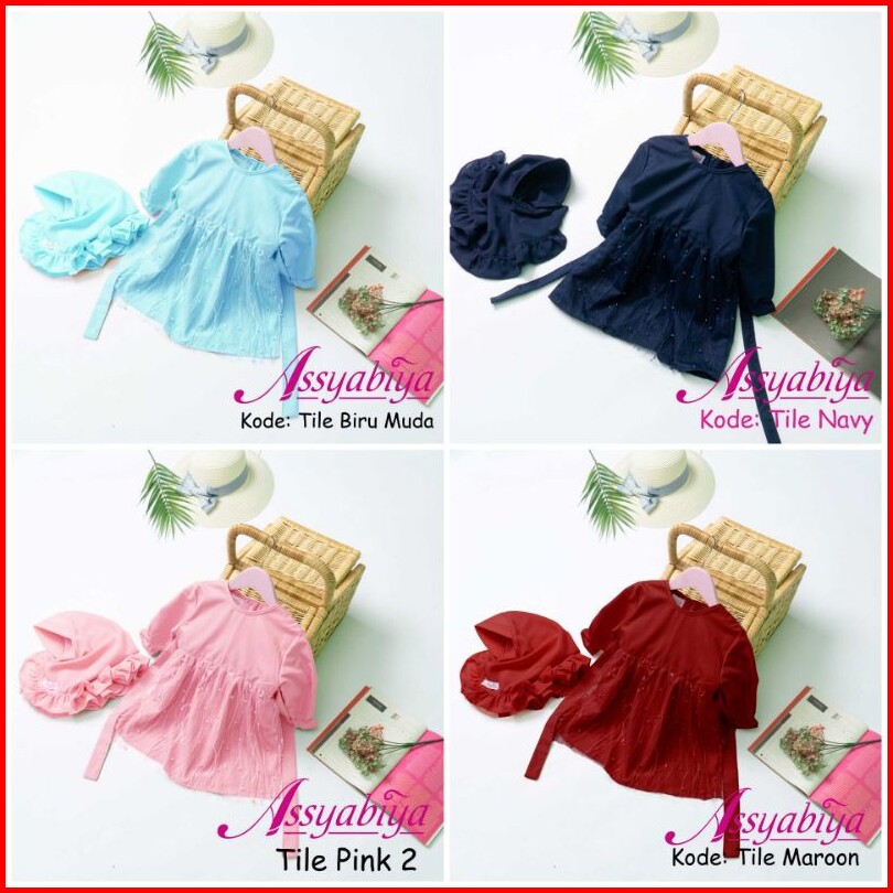 Littlesmall Gamis Anak Perempuan Mewah Katun Premium Gratis Jilbab- Tile Series