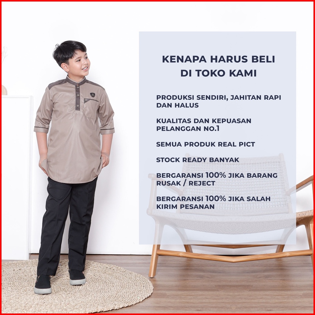 Assuffah I Atasan Baju Koko Kurta Anak 9-18 Tahun Lengan 3 4 Hasan Series