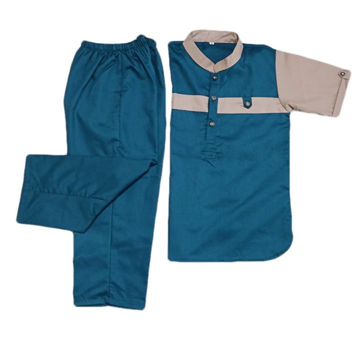 Setelan Koko Anak Laki Laki Setelan Pakaian Muslim Kemko Kemeja Lengan Pendek Kekinian Kasual Cuttingan Rapi Bahan Katun