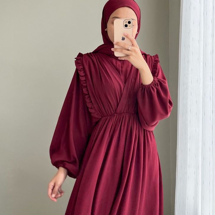 PROMO SADA DRESS - DRESS SERUT DADA CRINKLE AIRFLOW DRESS KONDANGAN KEKINIAN LENGAN BALON KEKINIAN BUMIL CRINKLE