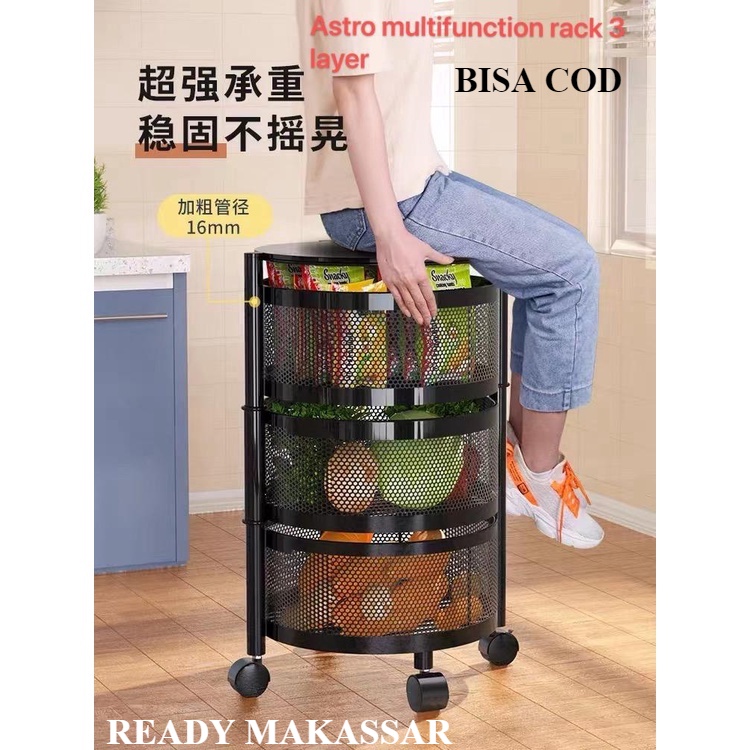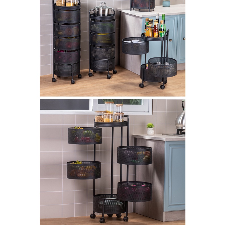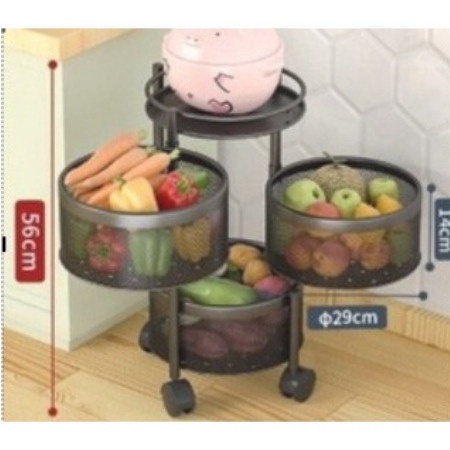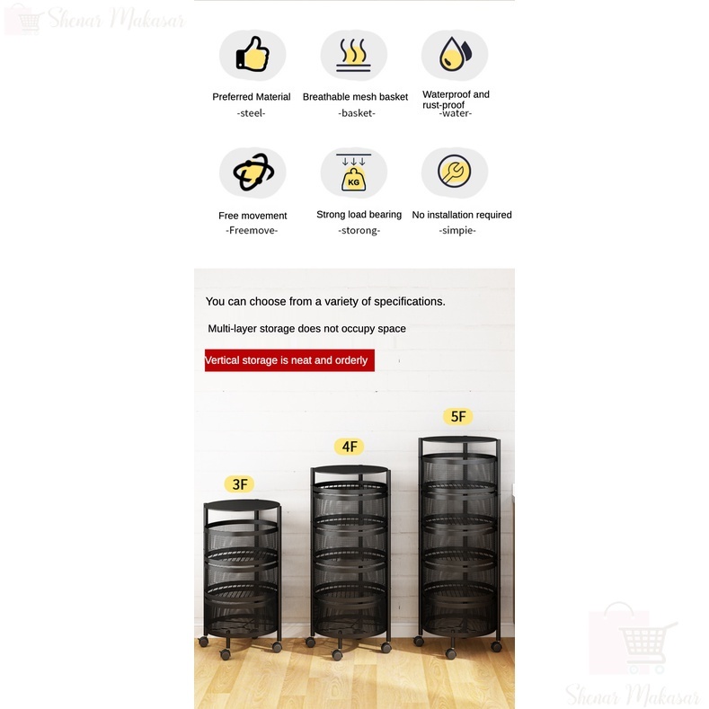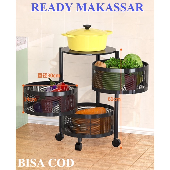 RAK SUSUN BESI DAPUR SERBAGUNA TINGKAT MODEL BULAT RAK TROLI SUSUN PUTAR 360 DERAJAT ROTARY MULTILAYER ORGANIZER