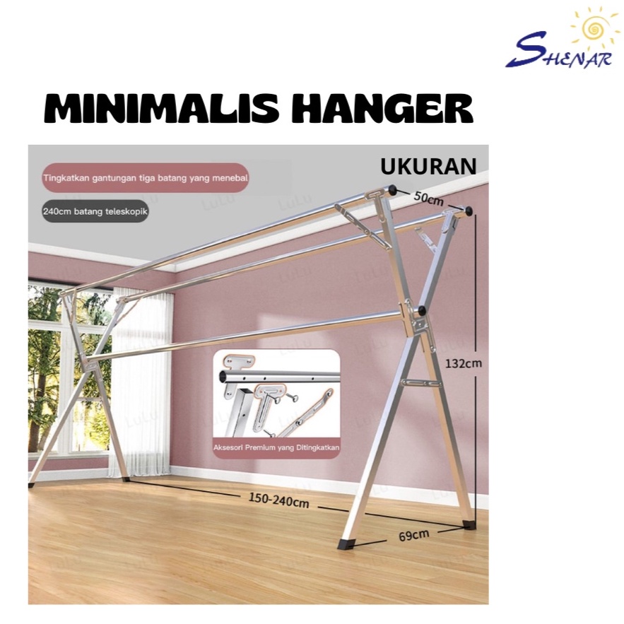 ADJUSTABLE MINIMALIS HANGER JEMURAN JEMURAN HANDUK SELIMUT JEMURAN STAINLEES STEEL ANTI KARAT 2 LAYER