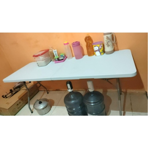 MEJA PESTA MEJA BAZZAR PUZZLE TABLE MEJA LIPAT PANJANG KAKI BESI WARNA PUTIH ELEGAN TERPANJANG MEJA SERBAGUNA