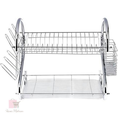RAK PIRING 2 SUSUN MINIMALIS STAINLESS PERALATAN DAPUR RAK PENGERING PIRING SENDOK GELAS