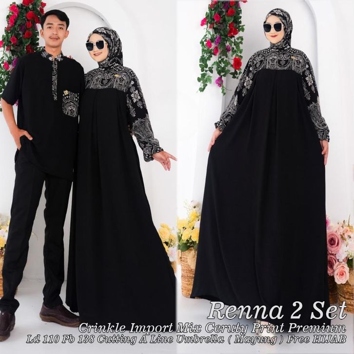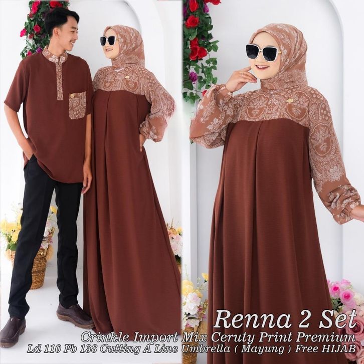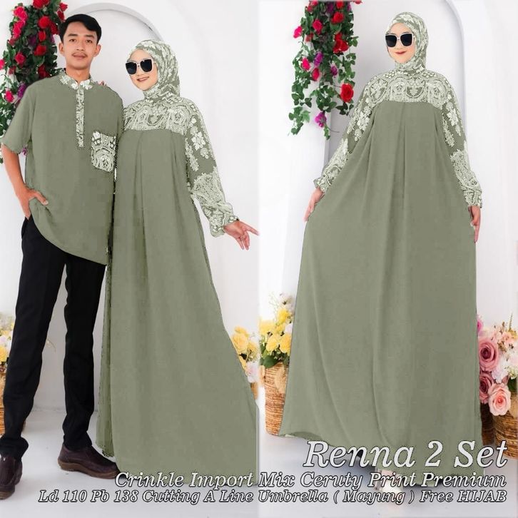 [Mall] Baju Couple Pasangan / Couple Pasangan Kondangan / Gamis Couple Pasangan Terbaru / Renna Sarimbit Dress Crinkle