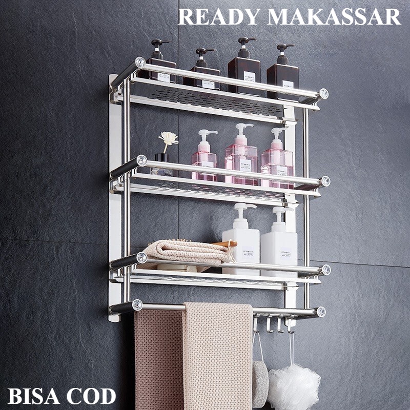 RAK DINDING KAMAR MANDI 3 SUSUN STAINLESS RAK GANTUNG KAMAR MANDI RAK TOILET 3 SUSUN RAK TEMPAT SABUN SHAMPOO