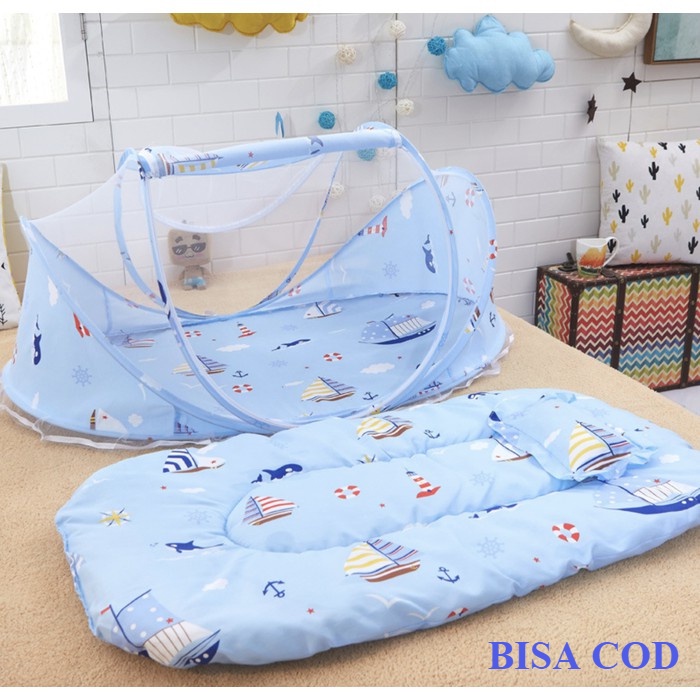 BOBO PULES KELAMBU BAYI MUSIK 3 IN 1 KASUR BAYI DAN BANTAL SET TEMPAT TIDUR BAYI KELAMBU BAYI LIPAT SUPER NYAMAN