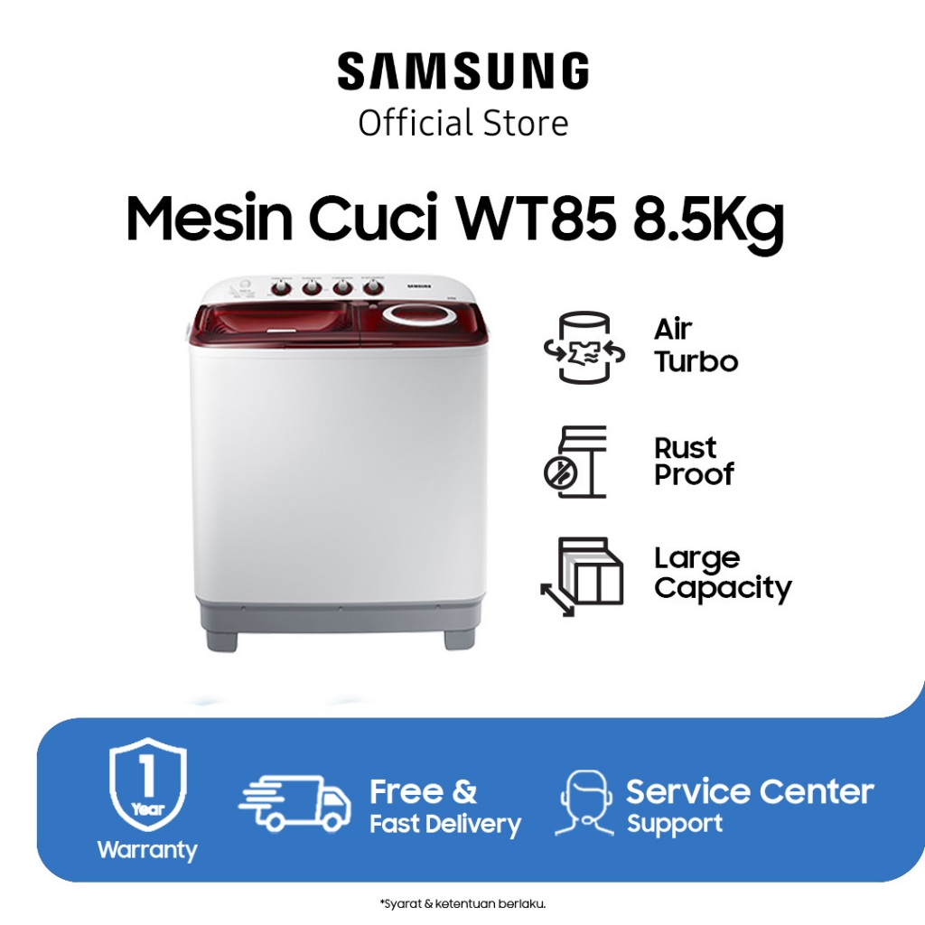 SAMSUNG MESIN CUCI 2 TABUNG, 8.5 KG - WT85H3210MG GRATIS ALAS KAKI MESIN CUCI