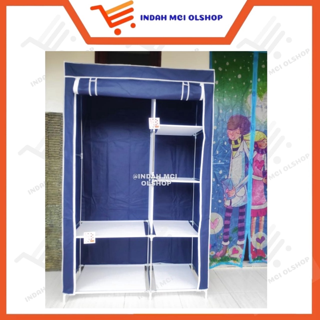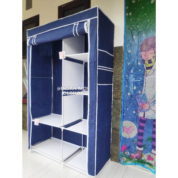 LEMARI PAKAIAN PORTABLE LEMARI SERBAGUNA KAIN POLOS DENGAN TEMPAT GANTUNGAN BAJU