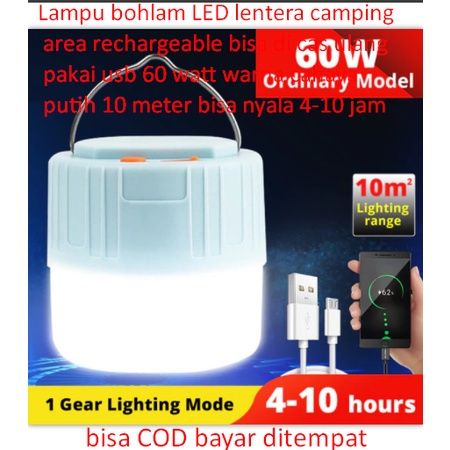 Lampu bohlam LED lentera camping area rechargeable bisa di cas ulang pakai usb 60 watt warna cahaya