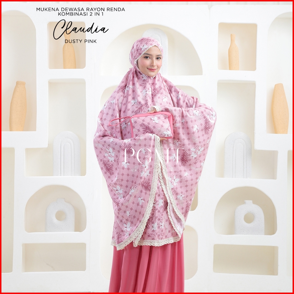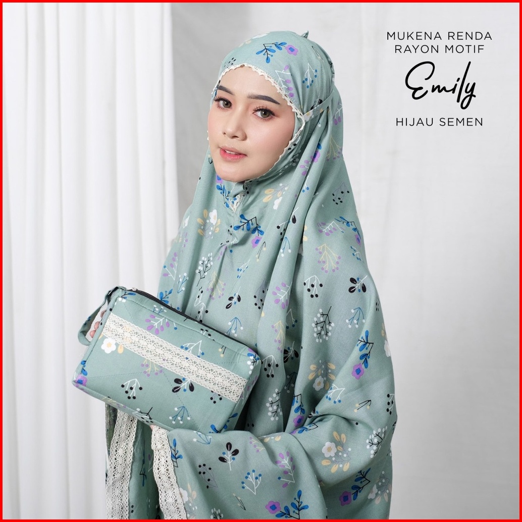 Pusat Grosir Mukena Tasik - Mukena Dewasa Renda Rayon Motif Emily Claudia 2in1