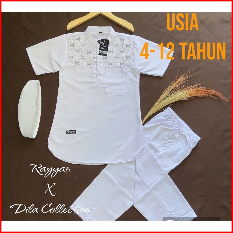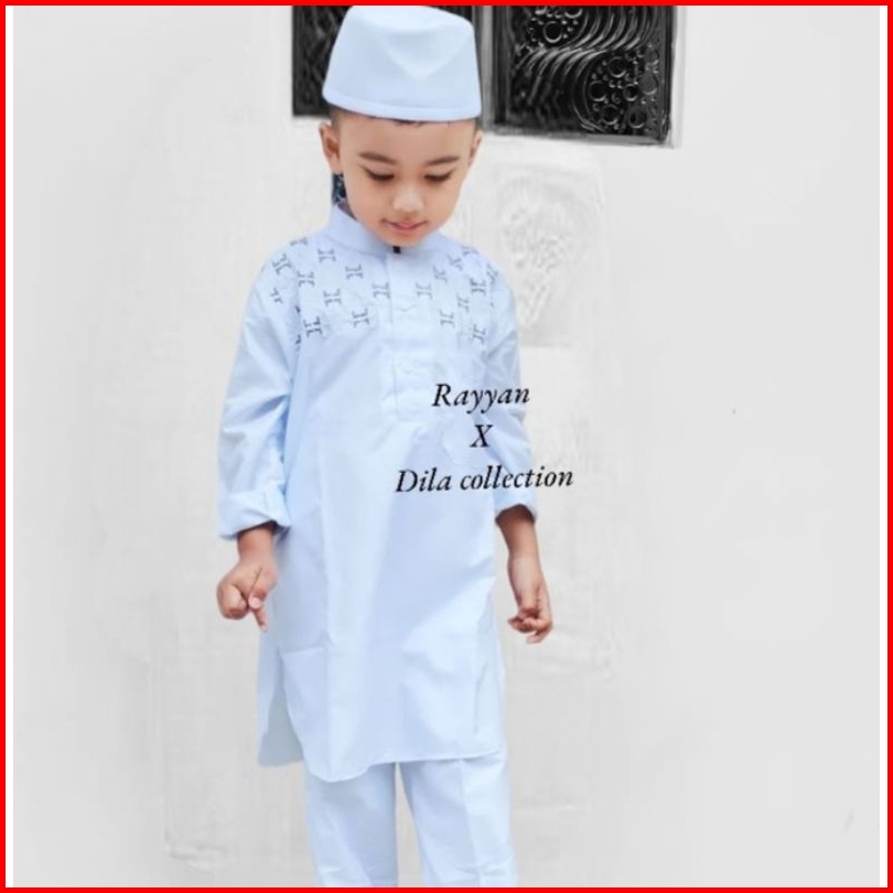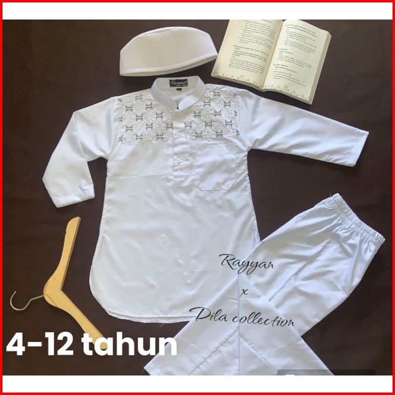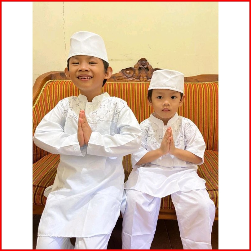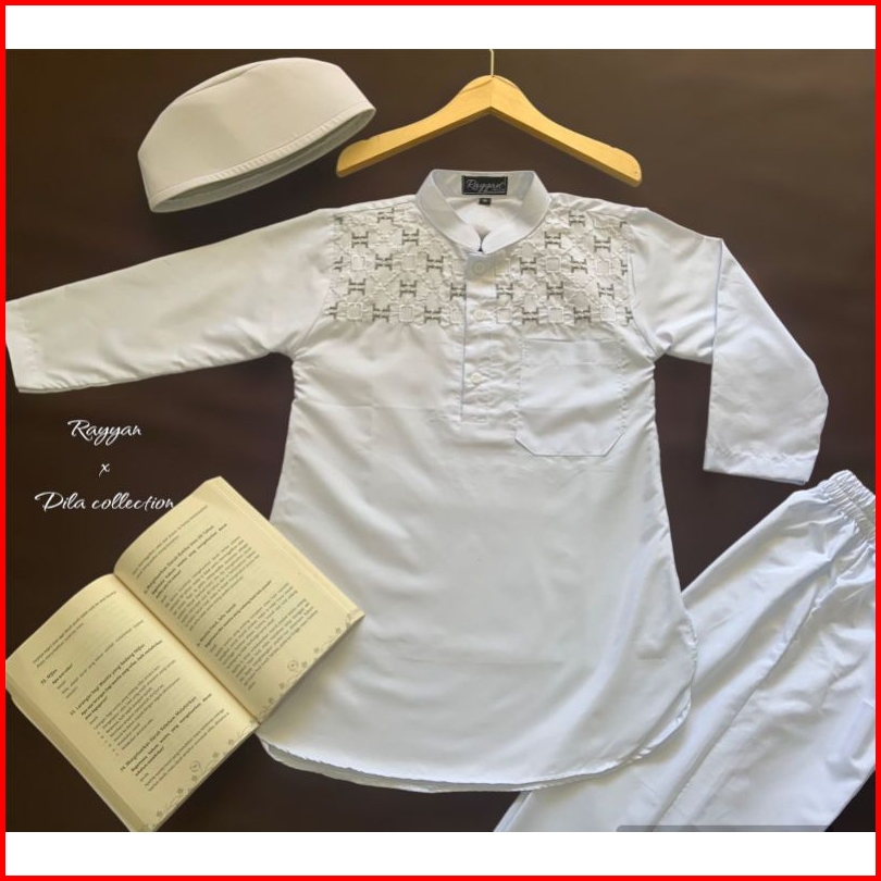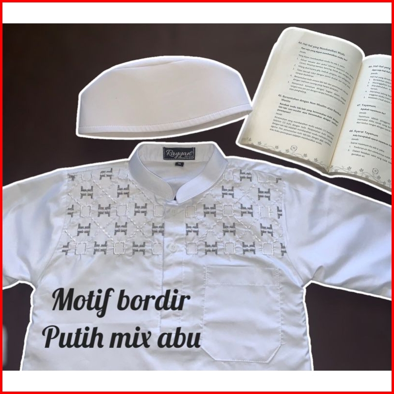 Koko Anak Putih Motif Bordir Abu Rayyan