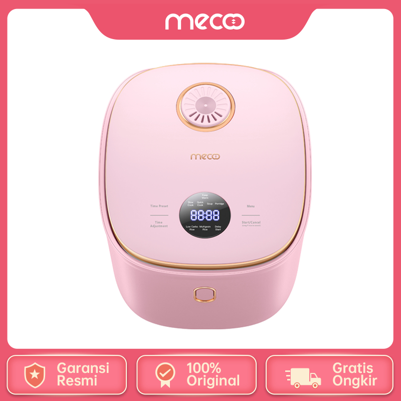 Mecoo Most Aesthetic Pink Rice Cooker Low Carbo Low Sugar Ceramic Coated Teflon Free 400 Low Watt 1.5L Digital Hemat Lis