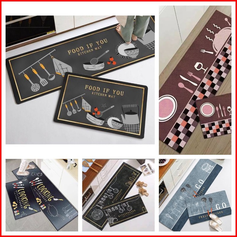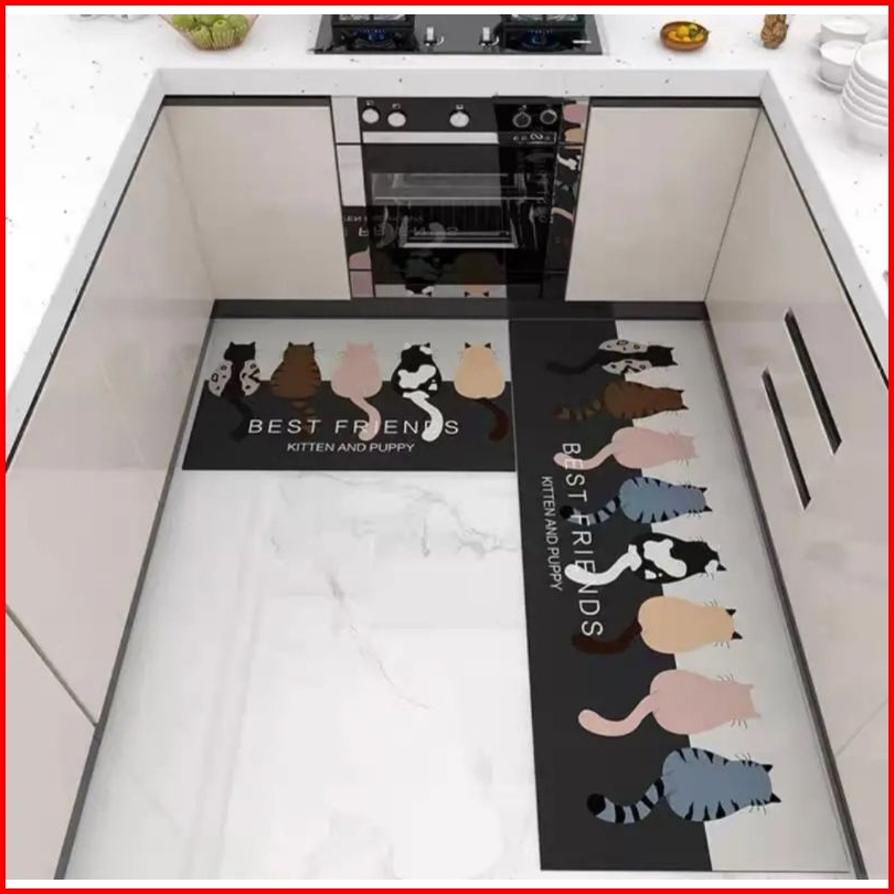 2-in-1 Keset Lantai Dapur Dan Kamar Mandi Pola Kartun Lucu Anti-slip