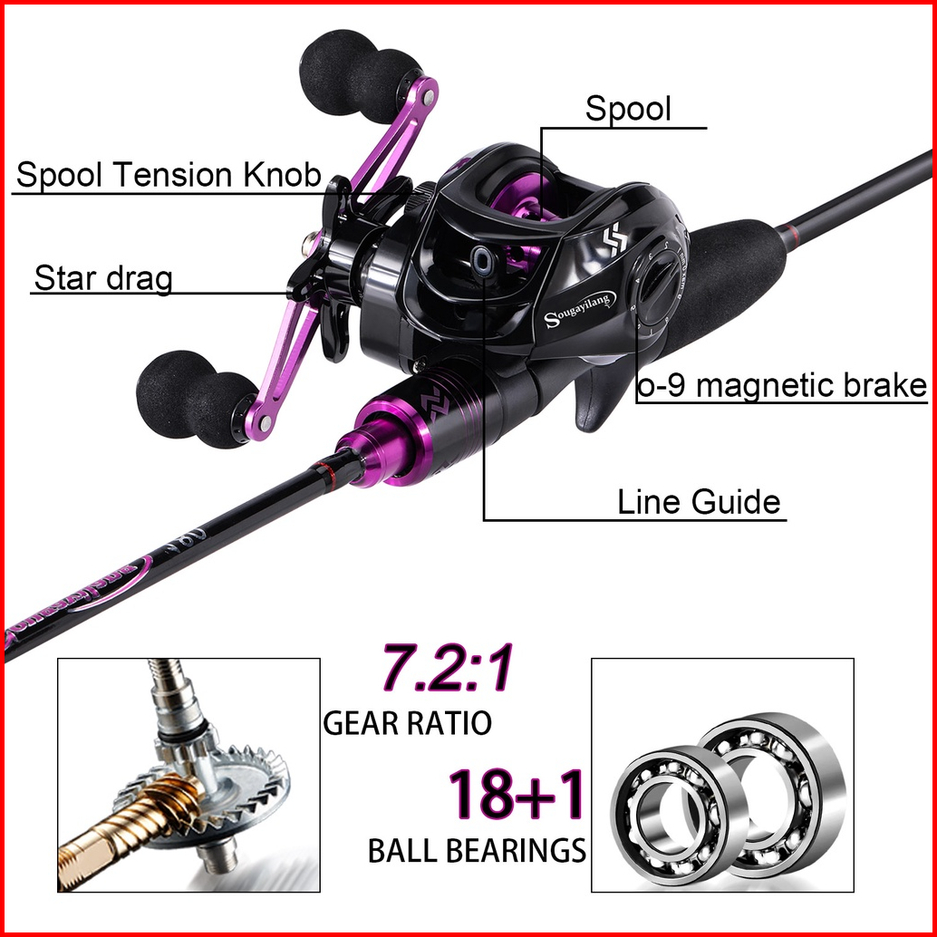 Ultralight Sougayilang Pancing Set 1.8m 2.1m Carbon Fiber Fishing Rod 7.2 1 Fishing Reel 18 1 Max Drag 10kg